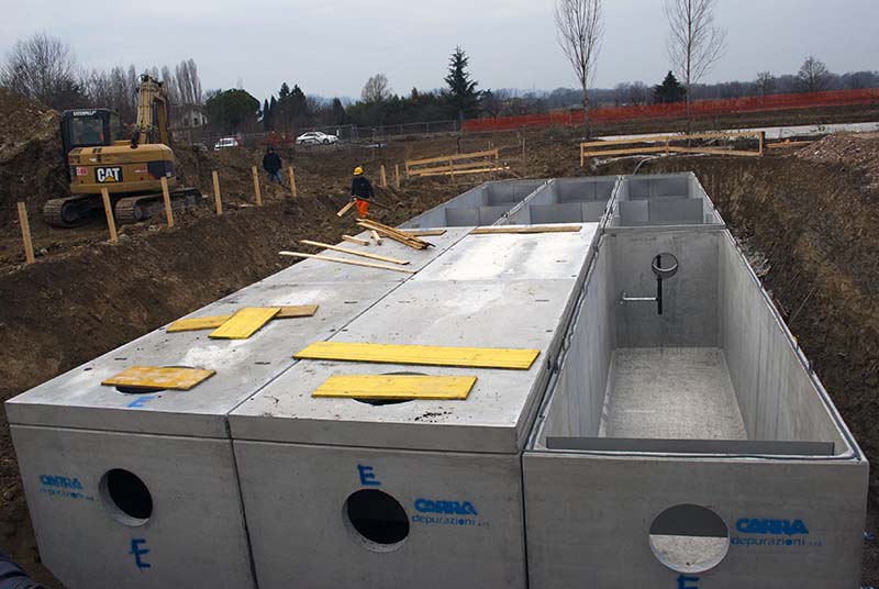 Trattamento in accumulo e rilancio acque meteoriche di prima pioggia.
